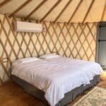 היורטים שלנו אינטימיים ונעימים מאובזרים בכל מה שצריך לאירוח מפנק בשלוות הטבע – מזגן שירותים מקלחת מיטות נוחות ותאורה חמימה